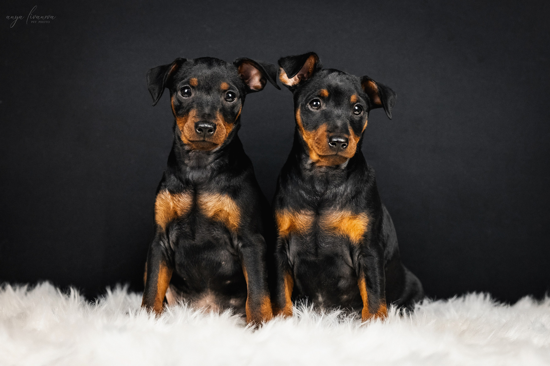 Пинчеры в мимозе
